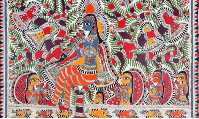 Paintings are mostly influenced by the religious motifs and beliefs of Indians. In the paintings one can see love for the nature and devotion for the Hindu deities. Central theme of all the paintings is love and fertility. It also sbows the aspect of the daily life of a woman or man of tbis region.People of Mithila is connected with nature which can be seen in these paintings . Painting of lotus, tree , bamboo , forest , snake , elephant, fish, tortoise ,parrot , peacock and many more can be seen. Artists used to depict the tales of religious characters/Gods such as Lord Krishna, lord shiva, lord Rama , goddess kali sita andany more. Few paintings also showcased the scenes from the royal court proceedings from the time and the events.