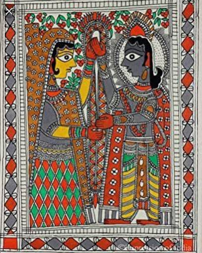 The history of the painting can be seen in the Ramayana . It is believed that the king of Mithila Raja Janak had first commissioned rural artists to paint palace walls . The ocassion was Janak’s daughter’s wedding Rajkumari Sita with Lord Rama.For making the paint more attractive , shinny and realistic , artists mixes cow dung and rock salt to the natural colors. The history of the painting has its roots in medival period too. It has said that many kings has bunch of Mithila paintings in their palaces which also reflects the magnificant history behind the painting.